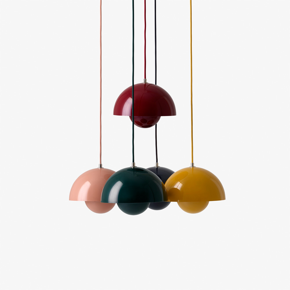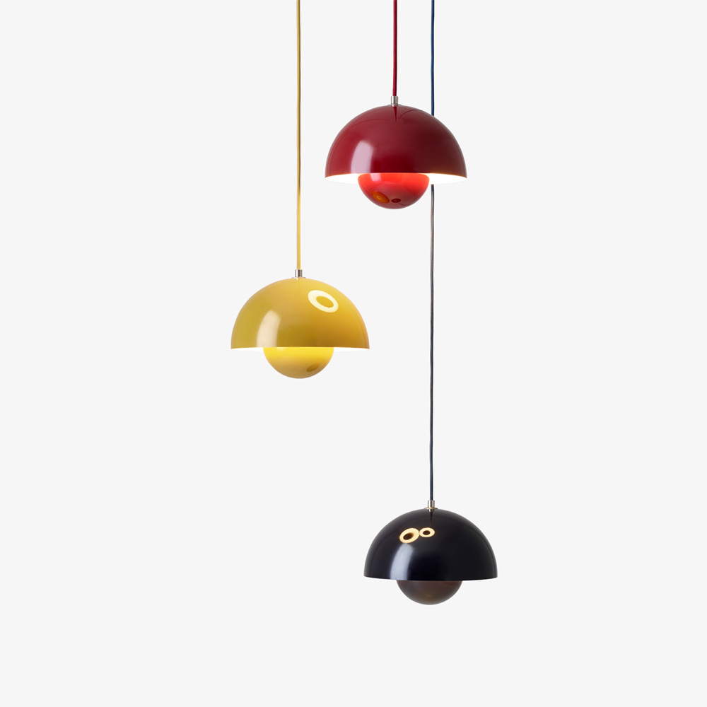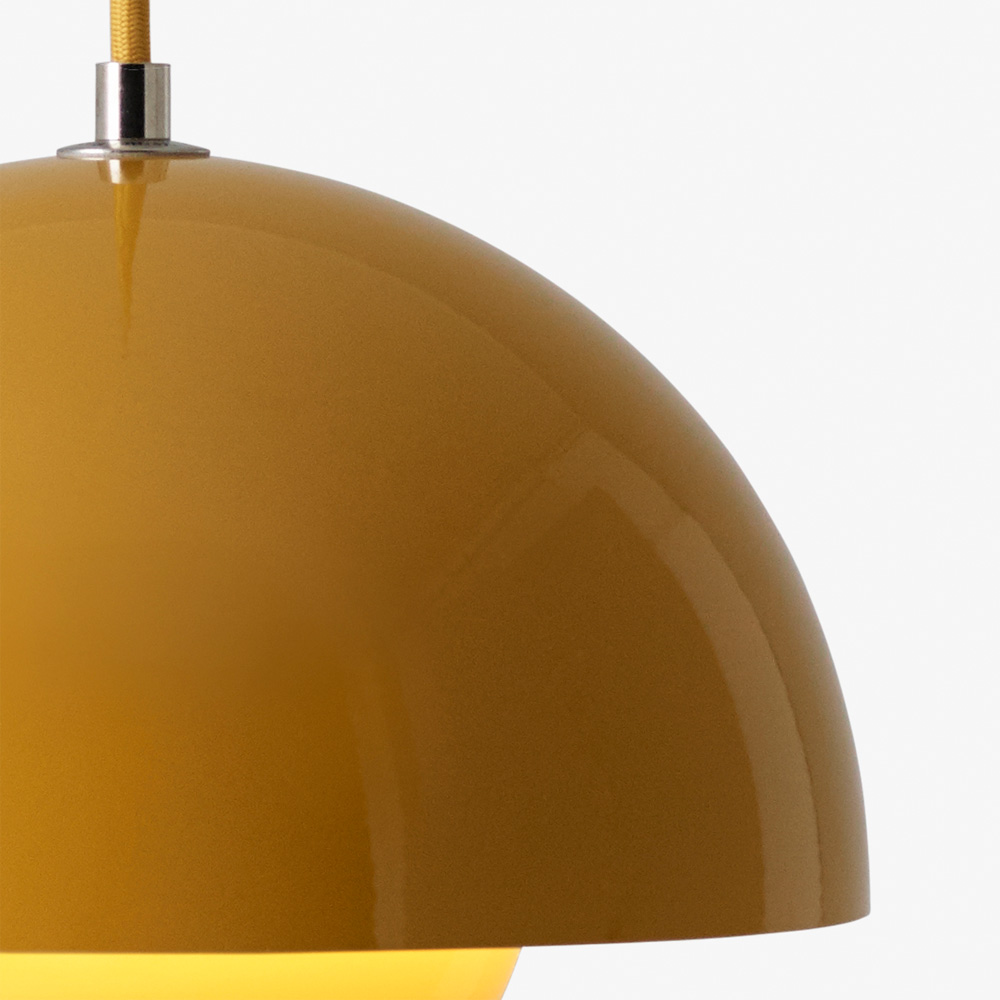 Die Flowerpot VP1 Pendelleuchte in Senffarben wurde von Verner Panton für die &Tradition Designkollektion entworfen