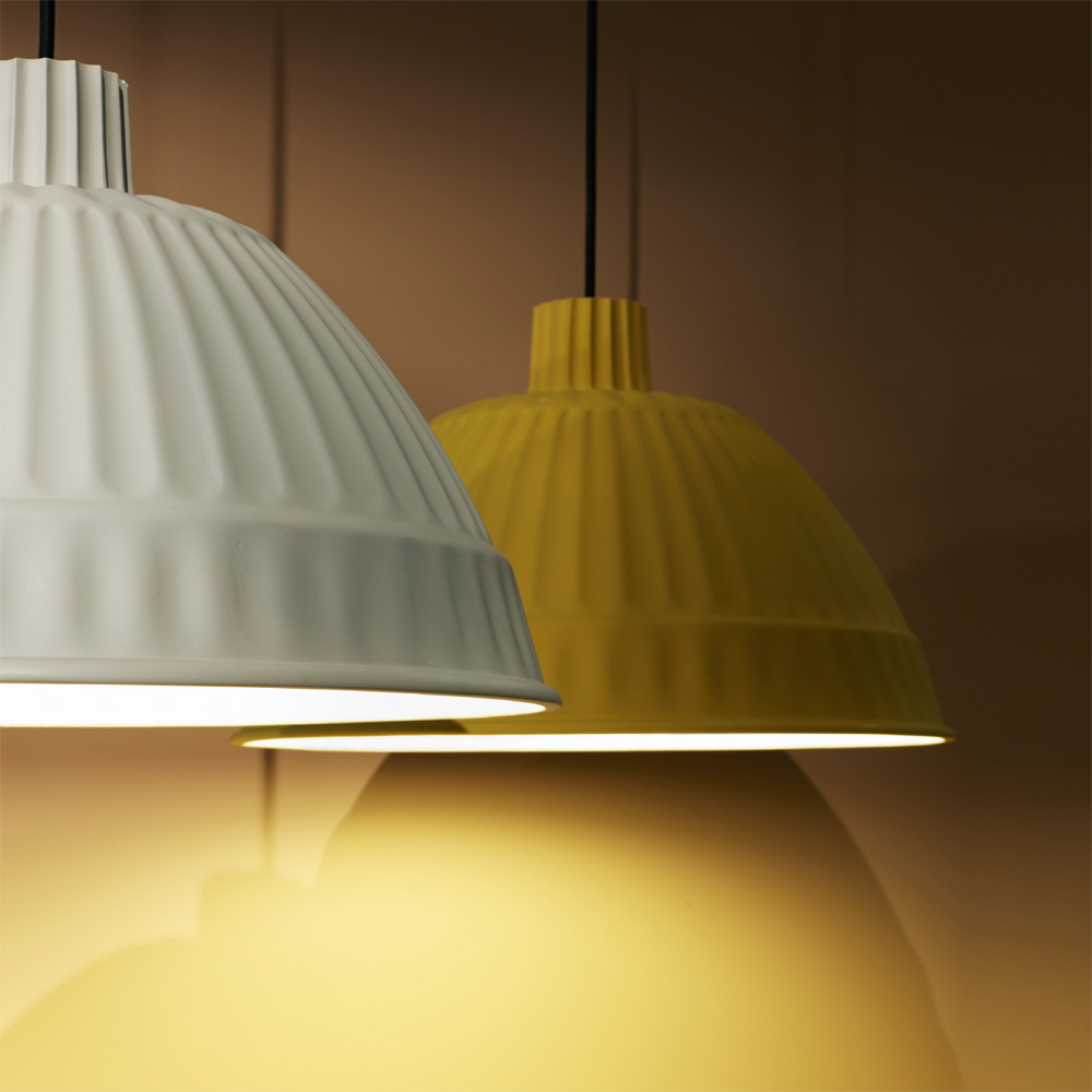 Aus Polymer hergestellt, in einer Farbpalette aus weichen und modernen Farben, innen mattweiß, um das warme Licht zu optimieren, ist Cloche die ideale Leuchte für Wohn- und Gewerbeflächen, in der Hotellerie und Gastronomie sowie Arbeitsumgebungen und in Einzelhandelsgeschäften.