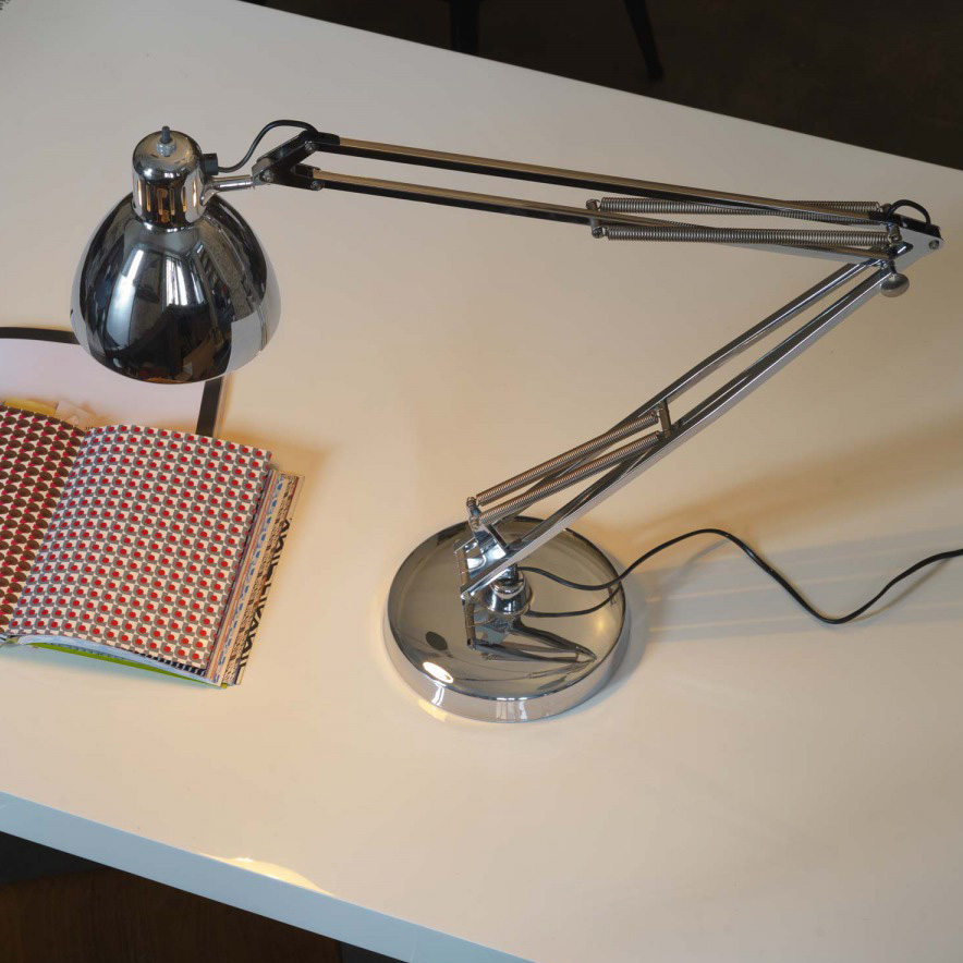 Die Leuchtenfamilie Naska ist ein Klassiker aus dem Jahre 1933. Einfach, robust und funktionell, mit einem allseitig verstellbarem Doppelarm und dem im Leuchtenkopf integrierten Ein/Aus Drehschalter, ist sie in drei verschiedenen Versionen für Tisch, Boden und Wand erhältlich. Die Arme sind in allen Richtungen orientierbar.