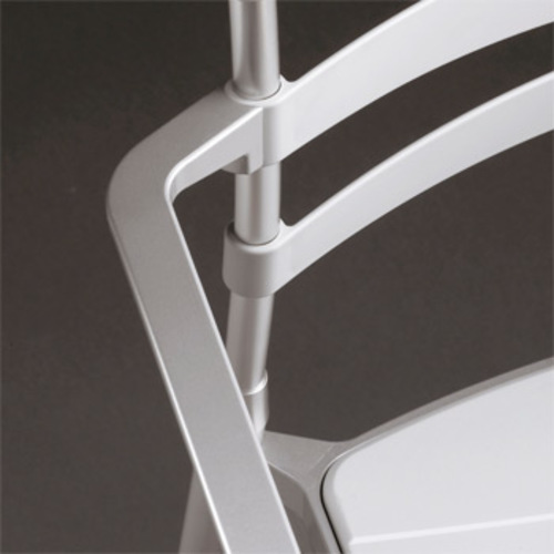 Das Gestell ist aus natürlich anodisiertem Aluminium und der Sitz und die Rückenlehne aus ASA-Kunststoff, eine robuste und nachhaltige Wahl.