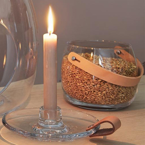 Maria BerntsenDesign With Light Klare Glasschale mit Lederhenkel [Höhe 10 cm]