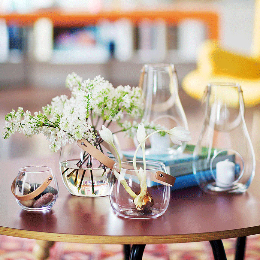 Maria BerntsenDesign With Light Klare Glasschale mit Lederhenkel [Höhe 12 cm]