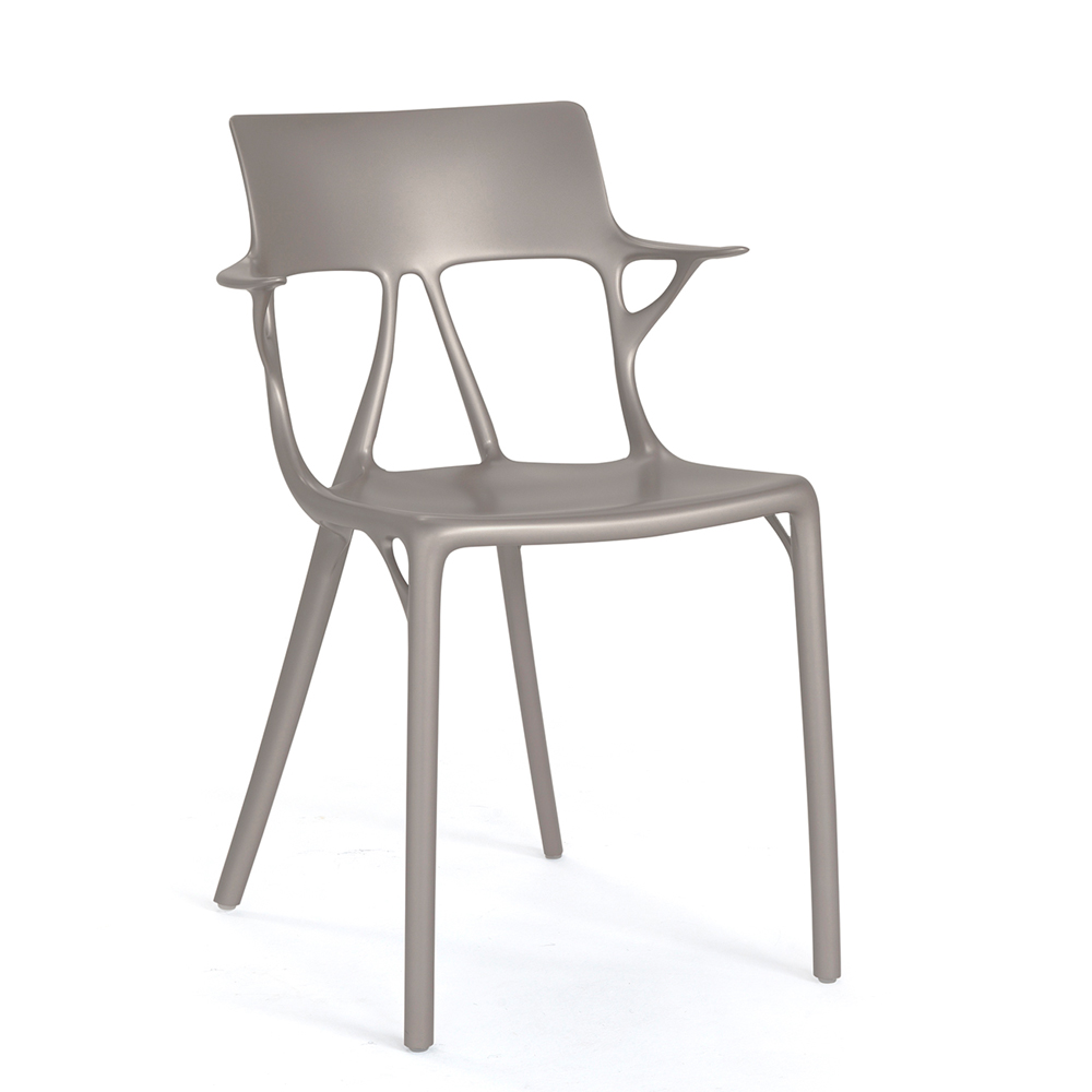 "A.I. Stuhl in Grau ist das erste Designobjekt, das eine künstliche Intelligenz als Antwort auf die Vorgaben des Designers (Philippe Starck) und des Unternehmens (Kartell) konzipiert hat.