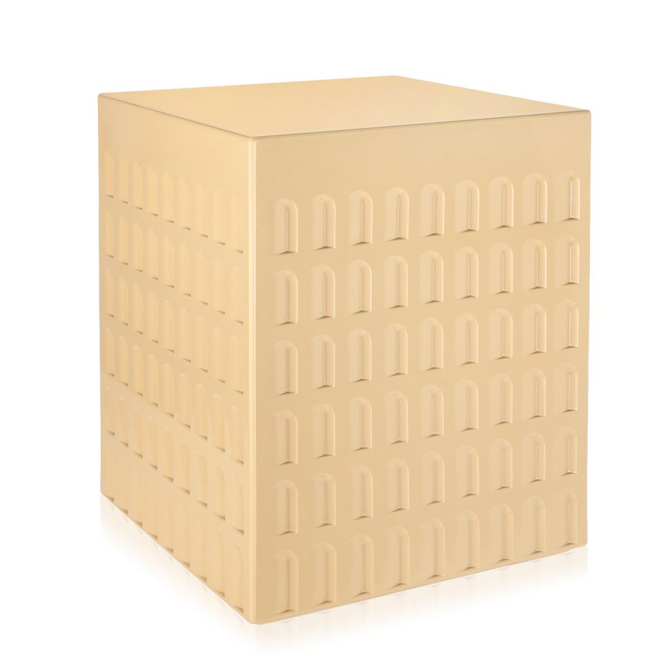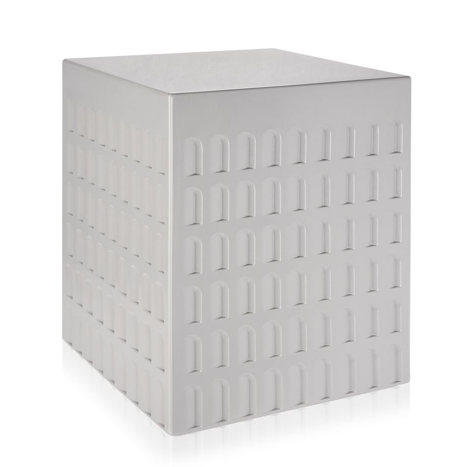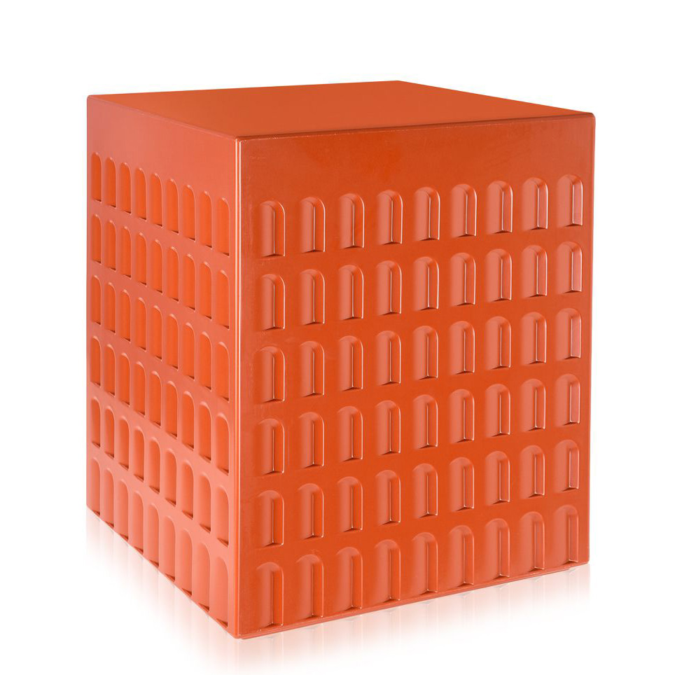 Eur in rot ist der Hocker von Fabio Novembre, der durch das römische Stadtviertel EUR inspiriert ist. Es ist ein mit der Reproduktion der Architektur des Palazzo della Civiltà Italiana bedruckter Würfel, eines der faszinierendsten Symbole Italiens, der verschiedene Funktionen - Sitzgelegenheit oder Ablage - erfüllt und zu unterschiedlichen Einrichtungen und Stilen passt.