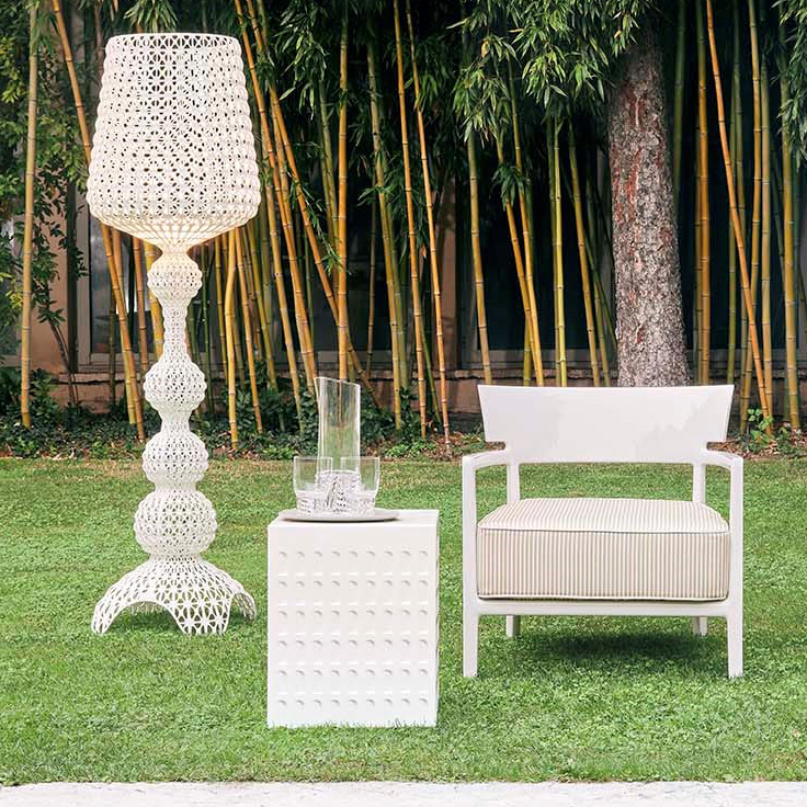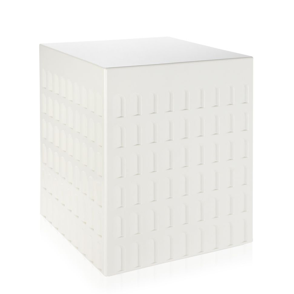 Eur in weiß ist der Hocker von Fabio Novembre, der durch das römische Stadtviertel EUR inspiriert ist. Es ist ein mit der Reproduktion der Architektur des Palazzo della Civiltà Italiana bedruckter Würfel, eines der faszinierendsten Symbole Italiens, der verschiedene Funktionen - Sitzgelegenheit oder Ablage - erfüllt und zu unterschiedlichen Einrichtungen und Stilen passt.