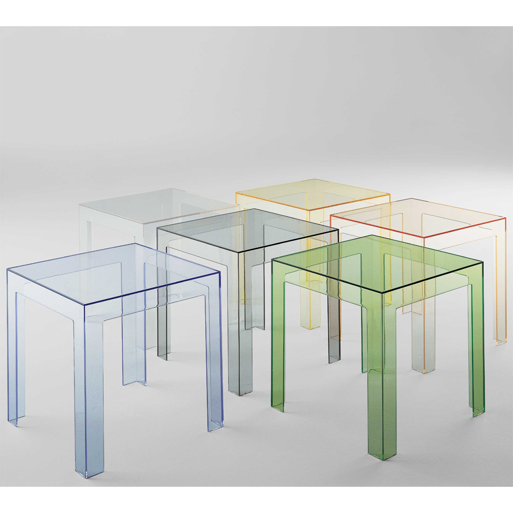 Ein vollkommen transparenter kleiner Tisch mit perfekten Maßen: 40x40x40 cm. Farbig, praktisch, sicher und funktionell. Jolly ist ein vielseitiger und verspielter Beistelltisch, gefertigt aus transparentem Polykarbonat, das stoß- und witterungsfest ist.