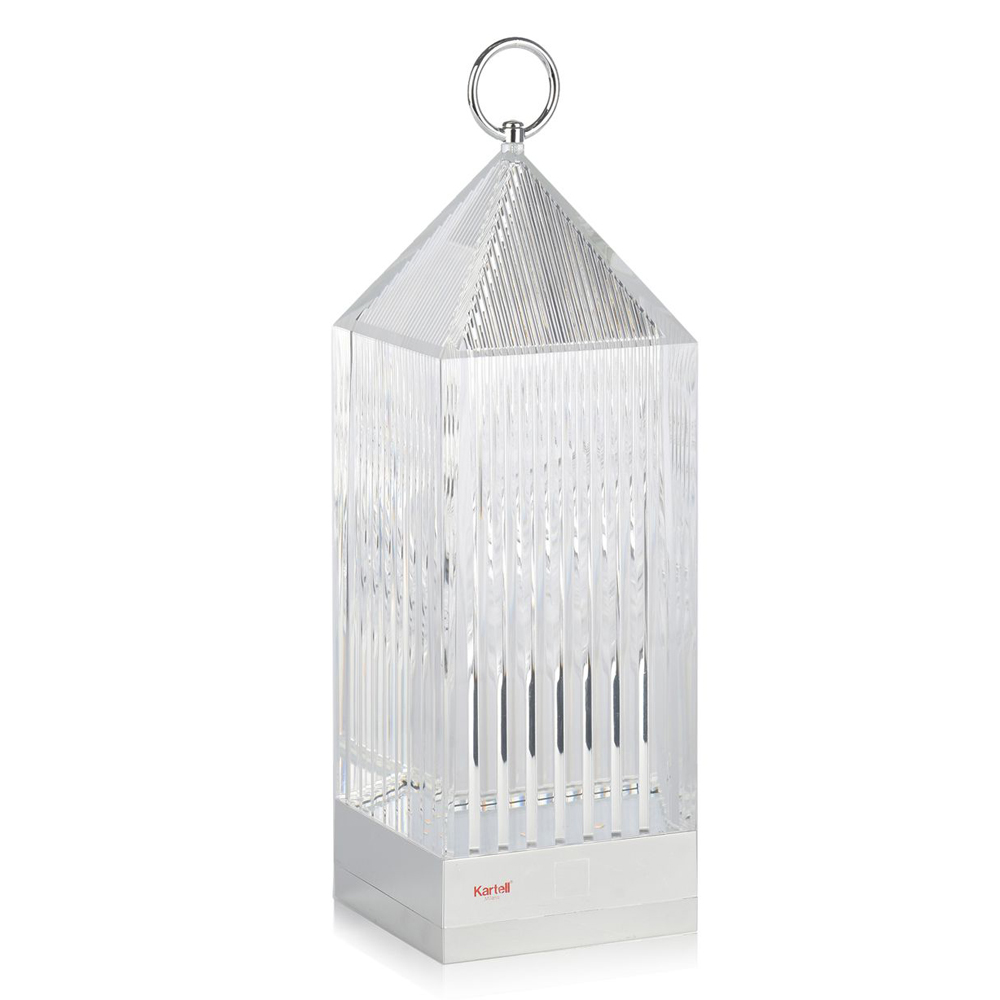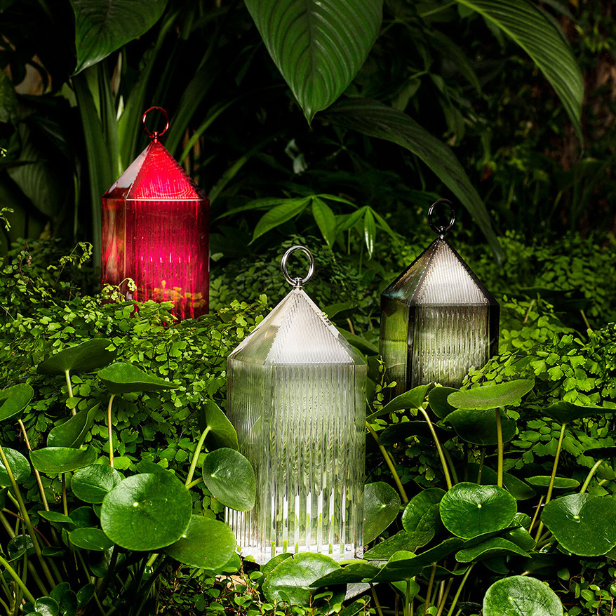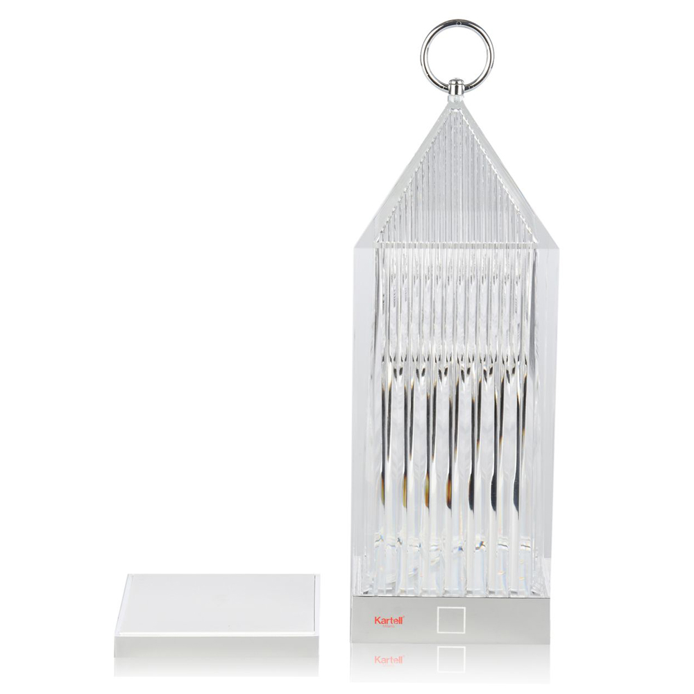 Lantern in glasklar ist eine originelle, tragbare LED-Leuchte, eine transparente, spritzgegossene Laterne, die sich an einer kabellosen Ladestation aufladen lässt.