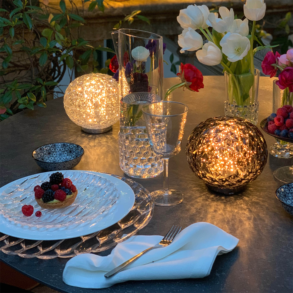 Mini Planet ist in zwei Versionen erhältlich: mit wiederaufladbarem Akku oder mit Stromkabel. Die Version mit Akku ist dimmbar und kann sehr leicht an einen anderen Platz gestellt werden. Die Helligkeit kann einfach durch Berühren des Lampenschirms in drei Stufen geregelt werden. Die Akkulaufzeit ist mit bis zu 21 Stunden je nach verwendeter Leuchtstärke sehr hoch.