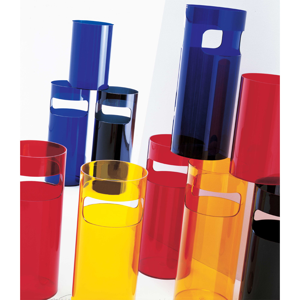 Der zylindrische, im Spritzgussverfahren hergestellte Schirmständer ist ein Klassiker von Kartell aus den 60er Jahren. Er ist vielseitig einsetzbar, einfach unzerstörbar und in vielen Farben erhältlich. Durch die zwei Seitenöffnungen kann er auch als Papierkorb verwendet werden.