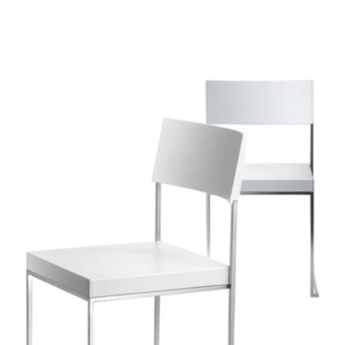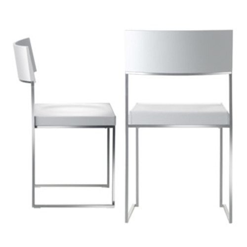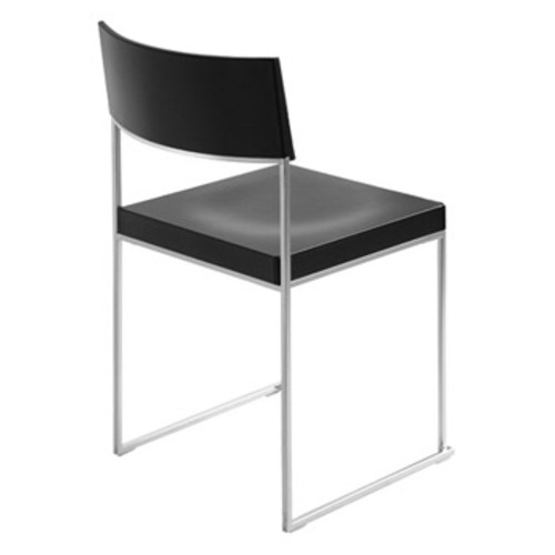 Stapelbarer Stuhl mit Gestell aus matt verchromtem Metall. Sitz und Rückenlehne aus Holz in verschiedenen Ausführungen oder mit Lederbezug mit Ziernähten erhältlich. Um Stapelungsabdrücke zu vermeiden, empfehlen wir, Stühle in Leder nur mit Schutzzwischenlagen zu stapeln. Auch ein Hocker mit fixer Höhe ist erhältlich.