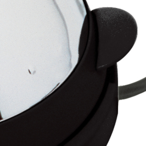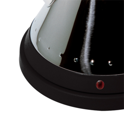 Elektrischer, kabelfreier Wasserkocher aus Edelstahl glänzend poliert mit Griff und Aufsatz aus schwarzem PA.