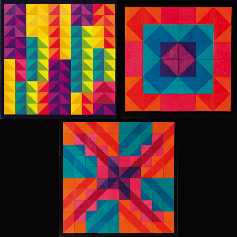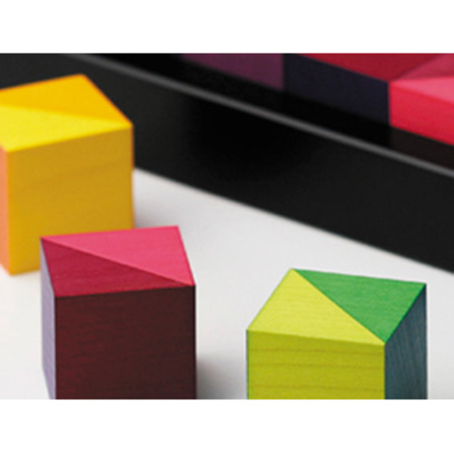 Farben, Farben, Farben - Drei unterschiedliche Mosaikwürfel sind die Basis dieses Farbenfeuerwerkes. Da keine Würfelseite der anderen gleicht, ergeben sich achtzehn differenzierte Farbflächen, wovon sechs über die Diagonale in zwei Farbtöne getrennt sind. Diese gestalterischen Finessen in Verbindung mit der Klarheit und Reinheit der Farben wecken im Spieler die Freude, immer neue Kombinationen zu kreieren.