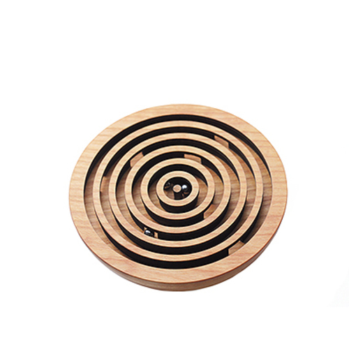 Es gilt, Kugeln durch fünf Ringe bis ins Zentrum zu bewegen. Gedacht ist dies schnell, doch es bedarf Geschicklichkeit und Geduld, um ans Ziel zu gelangen, denn die Durchgänge zwischen den Ringen sind nicht auf den ersten Blick sichtbar. Ein Spiel mit einer mediativen Dimension.