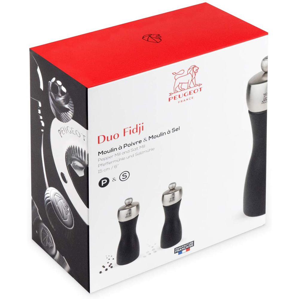 Die Fidji Pfeffermühle- und Salzmühlenset Matt Schwarz [Höhe 15 cm] wurde für die Peugeot Designkollektion entworfen.