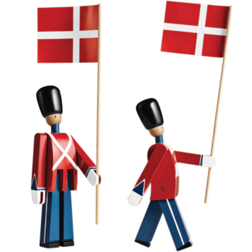 Die Inspiration zum Fahnenträger lieferte eines der dänischen Nationalsymbole auf dem Amalienburg Schlossplatz. Hiernach kreierte Kay Bojesen 1942 seine handbemalten Gardisten.