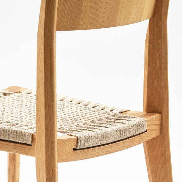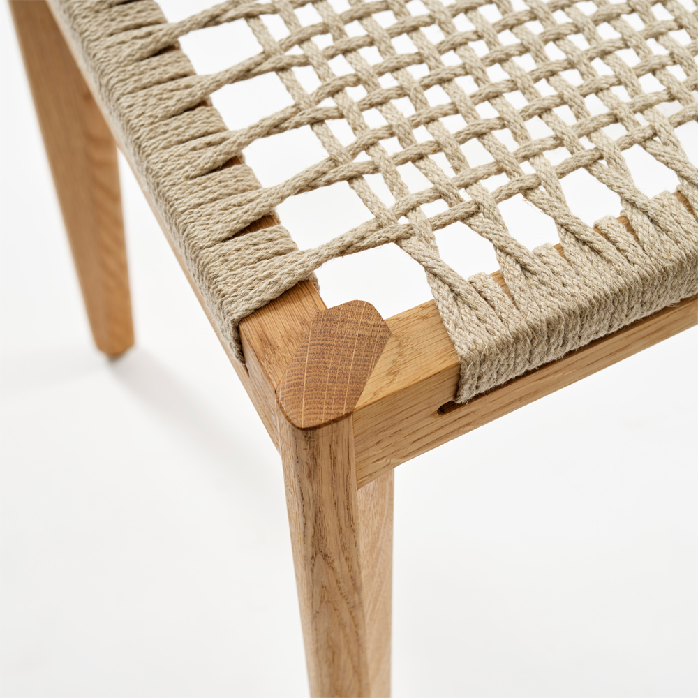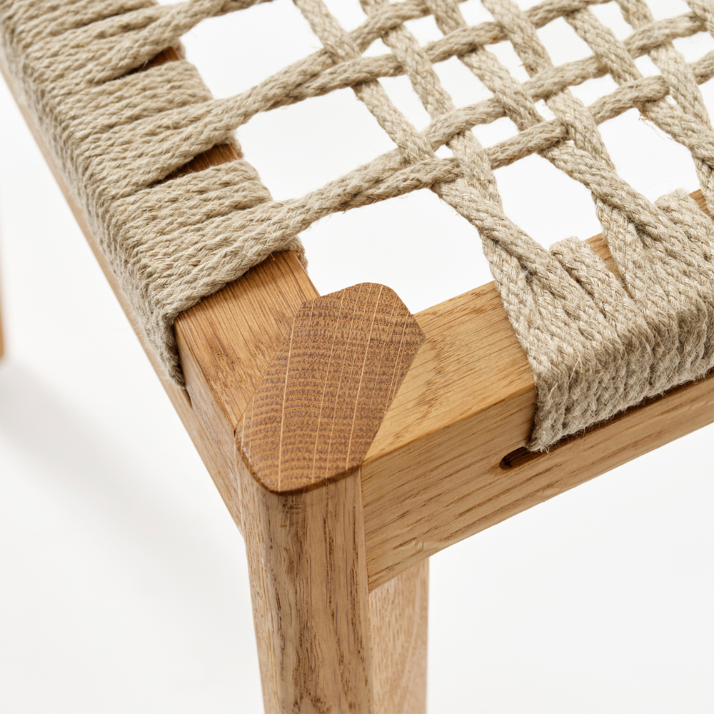 Die Bespannung erfolgt durch die Flechterin Simone Rüppel und der Seilerei Kislig in Winterthur. Anstelle von Rattan findet ein Flachsseil Verwendung, das an die alten Bergsteigerseile aus Hanf erinnert.