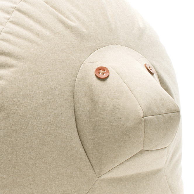 Gut, dass ich so ein dickes Fell hab. Nun, in Wahrheit ist es ein extrem strapazierfähiger wollweißer Stoff aus Europa. Ganz und gar lichtecht, reibfest, antibakteriell und Wasser abweisend. Alles Flüssige perlt dank des Lotuseffekts einfach von mir ab. Mit viscoelastischem Ergo-Fill - wie im großem Bruder Sitting Bull - bin ich nicht nur gut gefüllt, sondern auch schön anschmiegsam und formstabil.