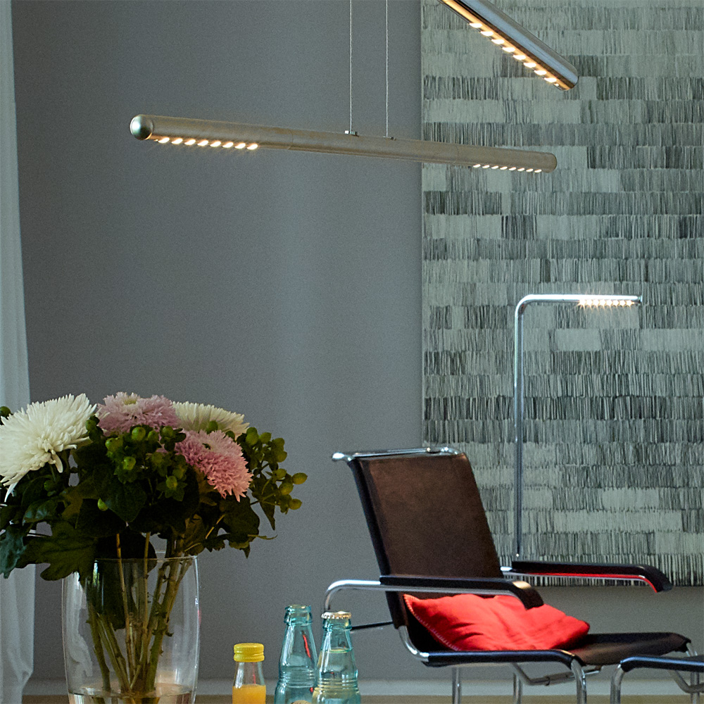 Neben dem klaren Design überzeugt die LUM durch Ihre komfortable Funktionalität und ist sehr flexibel einsetzbar. Die Verwendung modernster LED-Technologie garantiert neben einer hellen und brillanten Farbwiedergabe ein blendfreies und warmes Lichtklima. Eine Berührungsautomatik an dem Leuchtenkopf bietet neben der Ein- und Ausschaltung die Möglichkeit das Licht den Ansprüchen entsprechend zu dimmen. Das Drehen der waagerechten Leuchtenköpfe ermöglicht darüber hinaus eine stufenlose Veränderung der Strahlungsrichtung um bis zu 350°. Hierdurch lassen sich sehr individuelle Lichtsituationen erzeugen.