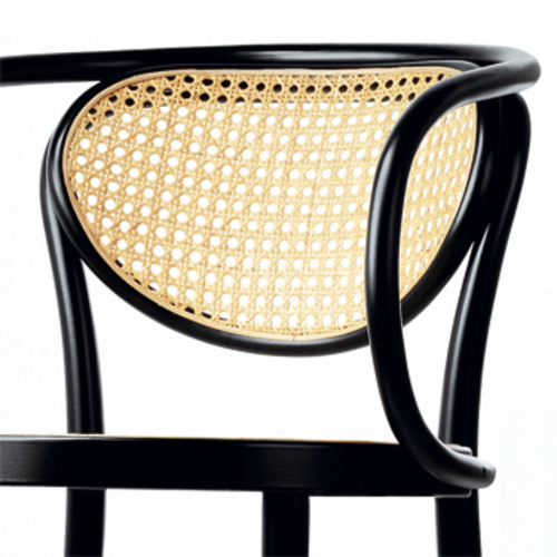 Dieser elegante Bugholz-Klassiker mit Rohrgeflecht ist ein Meisterwerk in Konstruktion und Fertigung: der ausladende Bügel, der Rücken- und Armlehne zugleich bildet, wird in einem Stück aus massivem Buchenholz in seine Form gebogen. Wie das Urmodell der Bugholzstühle, Modell Nr. 214, besteht der 209 ebenfalls nur aus sechs Teilen. Durch seine ästhetische Reduktion in Verbindung mit der organischen Form wirkt er fast wie eine Skulptur. Der Schweizer Architekt Le Corbusier war davon begeistert und setzte ihn in vielen seiner Gebäuden ein, u.a. in der Weißenhof-Siedlung in Stuttgart 1927. Er bestätigte, dass dieser Stuhl 'Adel besitzt'. Produziert wird er im Thonet Werk in Frankenberg.
