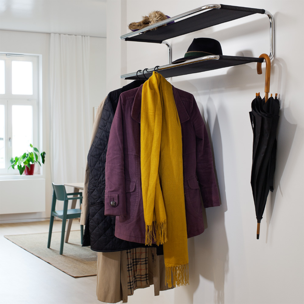 Mit den drei Garderoben- und Regal-Varianten ist eine komplette Produktfamilie für den Eingangsbereich entstanden, deren einzelne Module untereinander gut kombinierbar sind und die darüber hinaus hervorragend zu allen anderen Thonet Stahlrohr-Klassikern passen.