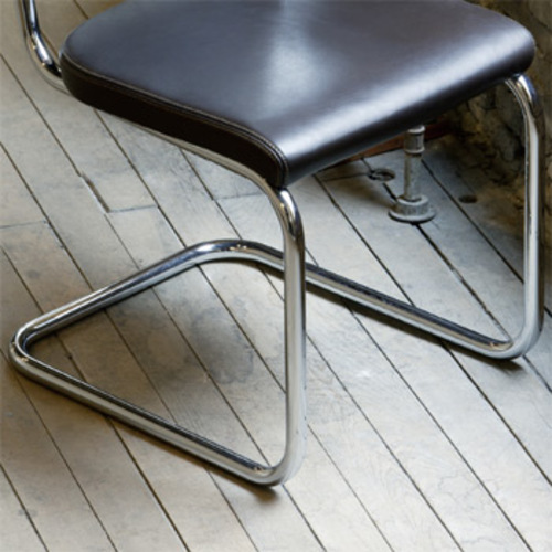 Metall - Für die Untergestelle verwendet Thonet Präzisionsstahlrohr oder massiven Rundstahl nach DIN. Speziell legierte, federharte und zugblanke Stahlrohre führen bei den Freischwingern zu einer hohen Beständigkeit des Schwingeffekts. Bei 'Pure Materials' werden die Stahlrohrgestelle mit einem speziellen Oberflächenverfahren verchromt.