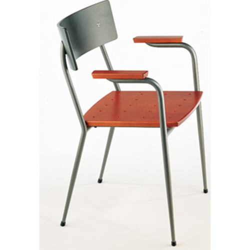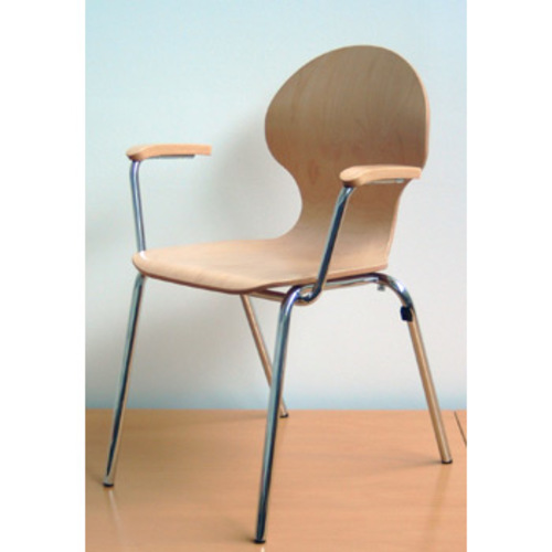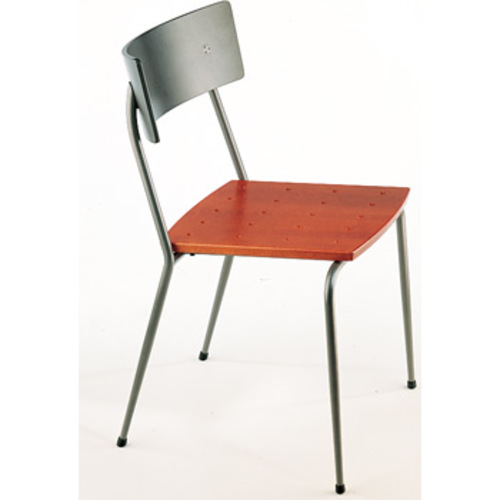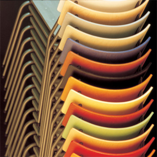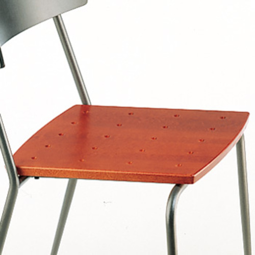 Robuste Stuhlserie in sehr vielen Varianten, daher auch für große Objekte geeignet. Massivholzsitz. Komfortable Lehne. Stapelbar.
