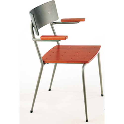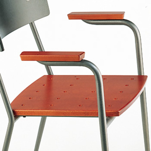 Robuste Stuhlserie in sehr vielen Varianten, daher auch für große Objekte geeignet. Massivholzsitz. Komfortable Lehne. Stapelbar.