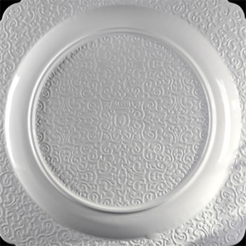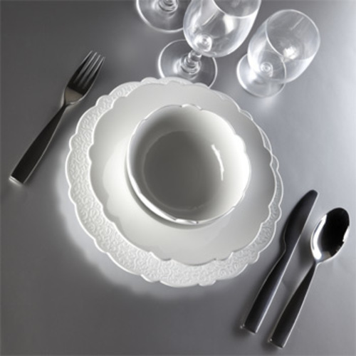 Dressed MW01/1 - Flacher Teller / Speiseteller - Tellerset aus weißem Porzellan mit Reliefdekor