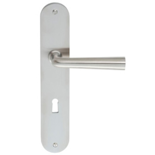 Abgerundetes Langschild mit Bohrung für Buntbart- Schlüssel und 2 Schraublöchern